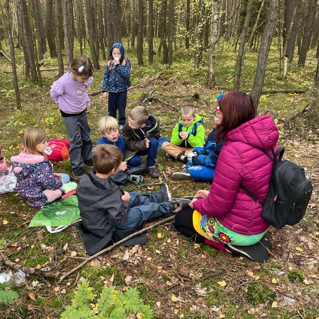 Děti se s Evičkou a průvodkyní Lesní mysli Ivanou vydaly na podzimní "Lesní cestu přátel".