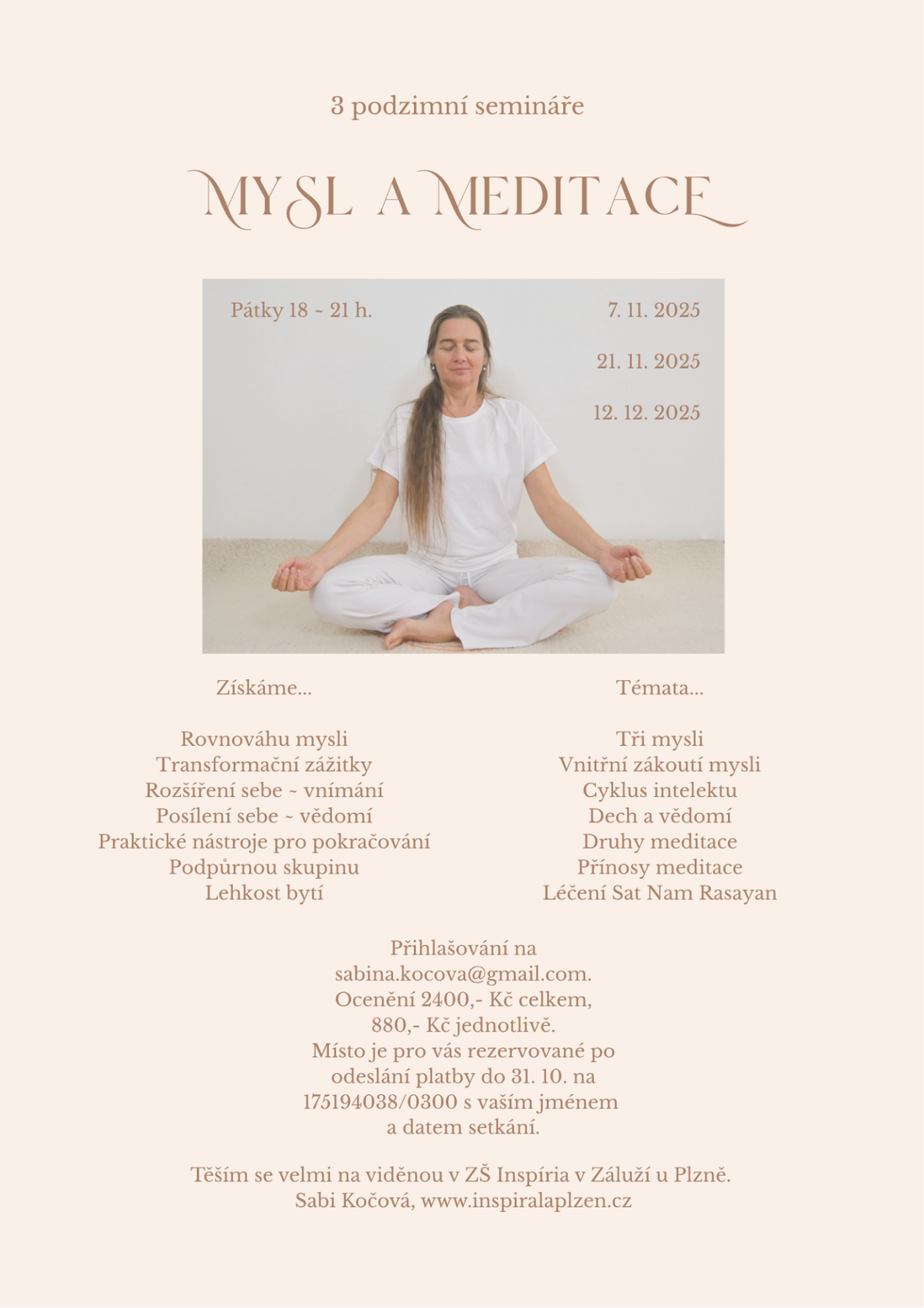 Navštivte semináře s tématem Mysl a meditace pořádané v budově školy tři podvečery v listopadu a prosinci. 💚 Podrobnosti i kontakt najdete v pozvánce. 🙂👇